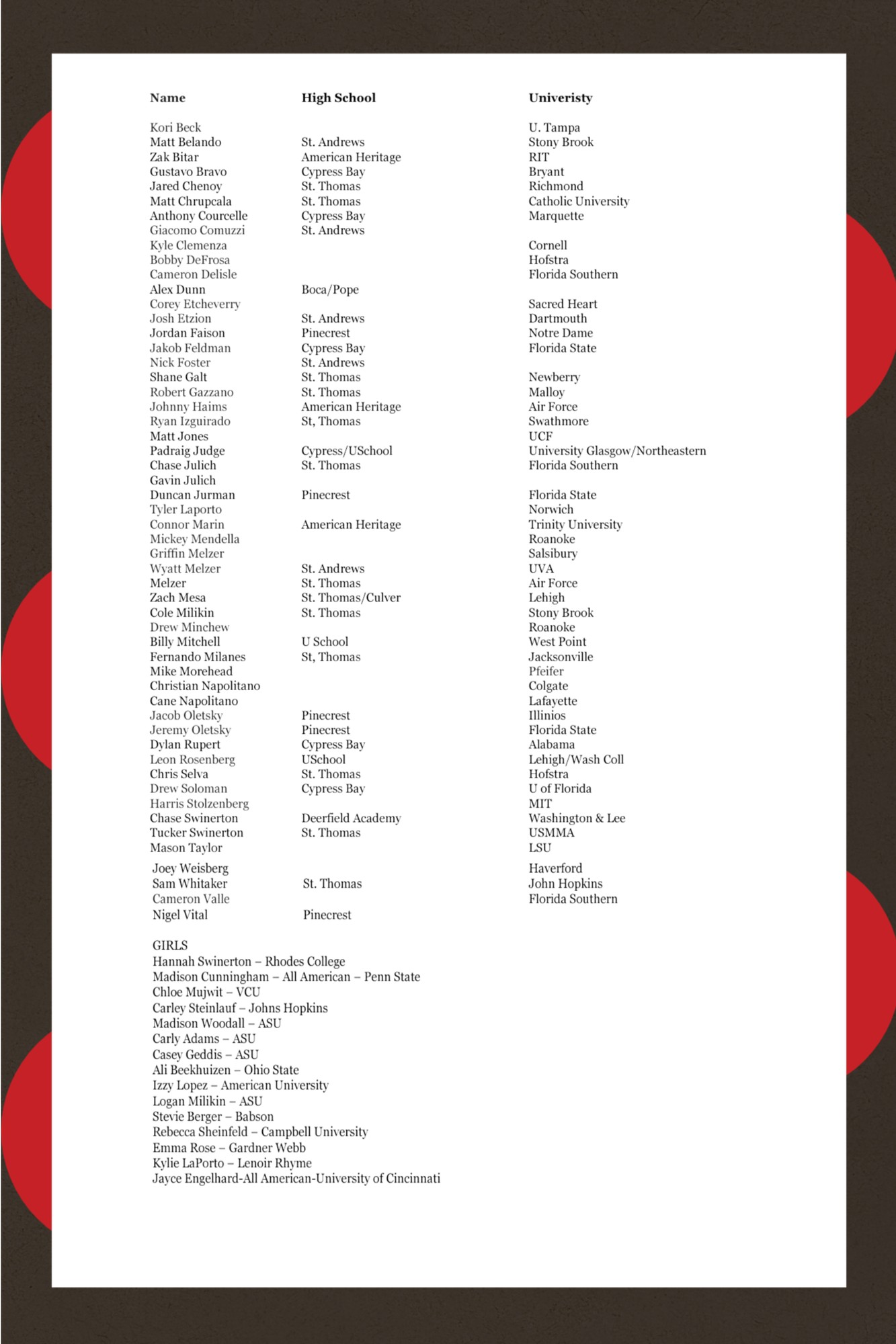 Our alumni have not only excelled in athletics but have also been recognized for their academic achievements and leadership. Several have received prestigious accolades, including: